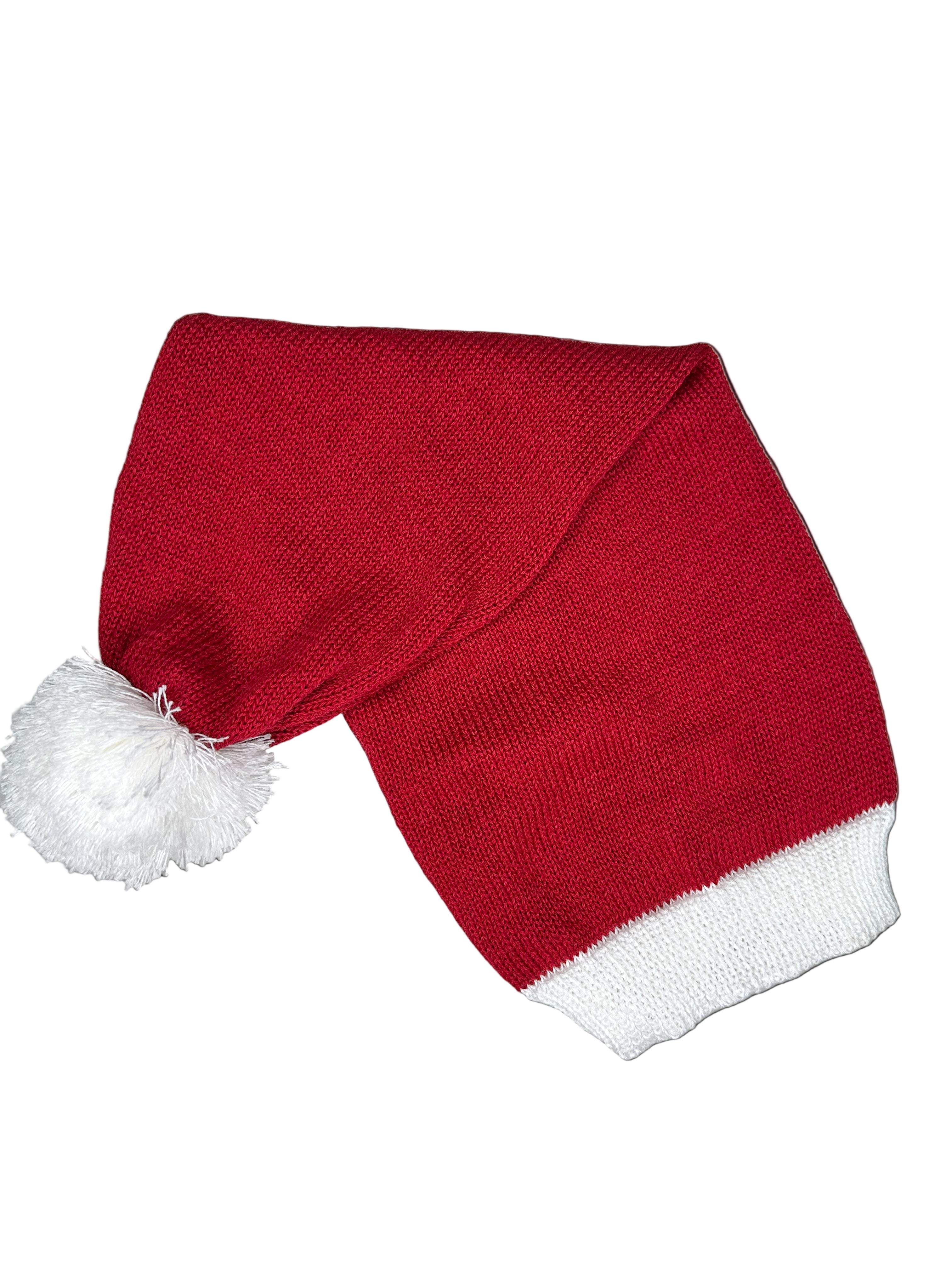 Touca alongada confeccionada em tricô antialérgico, de toque macio e confortável. Tamanho único ideal até 24 meses. Cor única: vermelha com detalhes em branco.